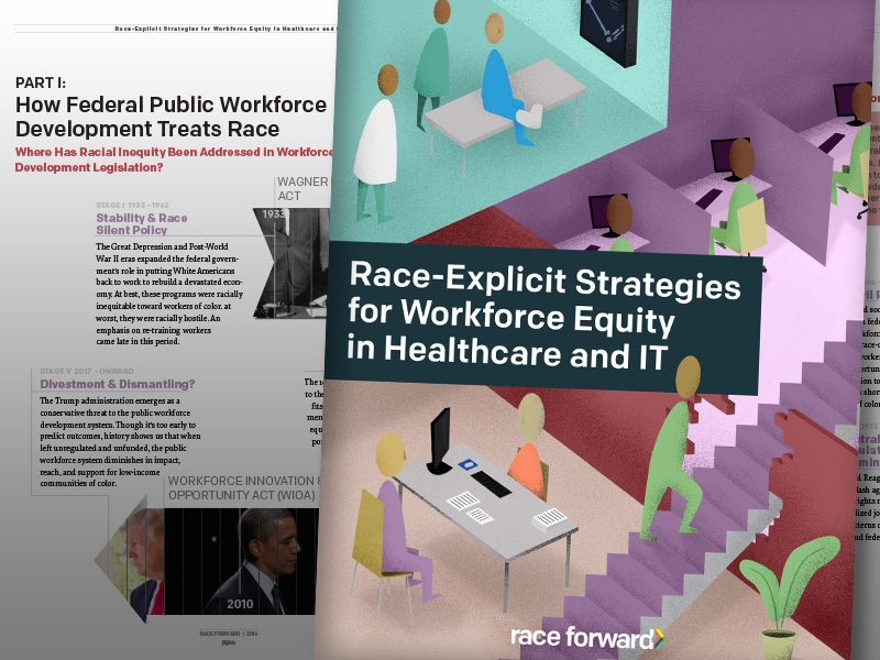 Drawing from academic research, interviews with workers of color and key experts in the field, and results from a 2016 Race Forward survey of 70 workforce development organizations nationwide, Race-Explicit Strategies for Workforce Equity in Healthcare and IT identifies barriers to achieving equitable employment outcomes for workers of color in the workforce development field, and outlines solutions to increase racial equity through a systemic, race-explicit, and outcome-oriented approach.